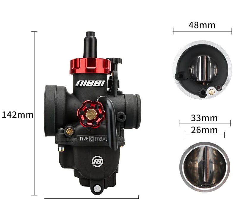 Combined with the NibbiRacing carburetor atomization technology, NibbiRacing creates a sensitive choke valve and improves performance. To achieve the best results, we also recommend buying the NIBBI RACING air filter. Accessible idle and mixture settings. The package includes a set of jets