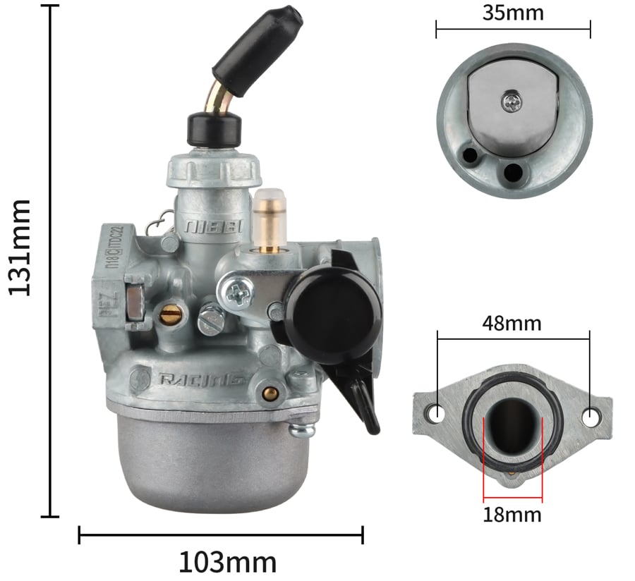 is most commonly used for four stroke engines 80cc, 90cc and 100cc quadricycles, motorcycles and go-kars. Thanks to excellent technology, the NIBBI RACING carburetors are perfectly tuned for better performance and lower fuel consumption. To achieve the best results, we also recommend buying the NIBBI RACING air filter. Accessible idle and mixture settings