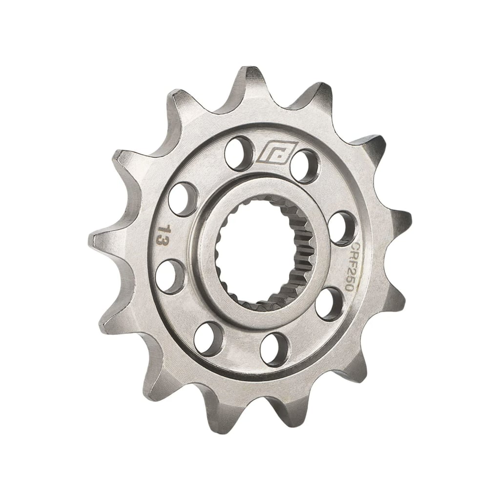 is an ultra-light chain wheel of premium quality. Thanks to the use of advanced computer engineering and CNC machining, we achieve consistently perfect concentration, seating, load distribution and uncompromising strength for each front pinion for motocross, while ensuring maximum power transfer for each chain wheel we produce.