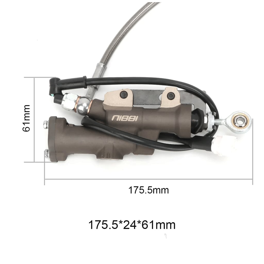 The brake assembly is made of CNC aluminium main cylinder, stainless steel braided hoses and wear resistant plates - resistant to heat, mud and vibrations for long-lasting performance.