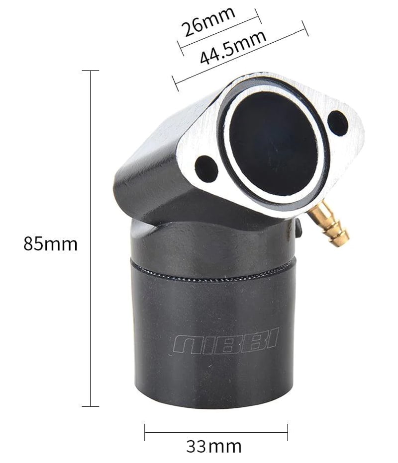 Flange, adapter GY6 carburetor NIBBI racing 44,5mm / 33mminternal diameter for carburetor 33mm, total height 85mm, screw pitch flange 44,5mm, drilling flange 26mm- designed by leading innovators in the motorcycle industry - craftsmanship and...