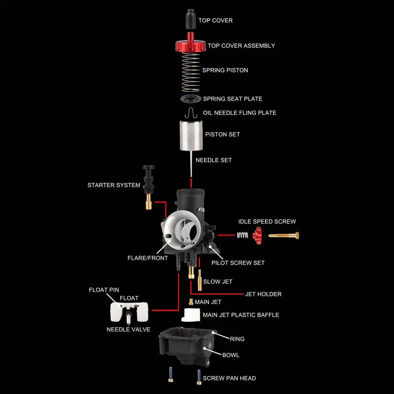 Combined with the NibbiRacing carburetor atomization technology, NibbiRacing creates a sensitive choke valve and improves performance. To achieve the best results, we also recommend buying the NIBBI RACING air filter. Accessible idle and mixture settings. The package includes a set of jets