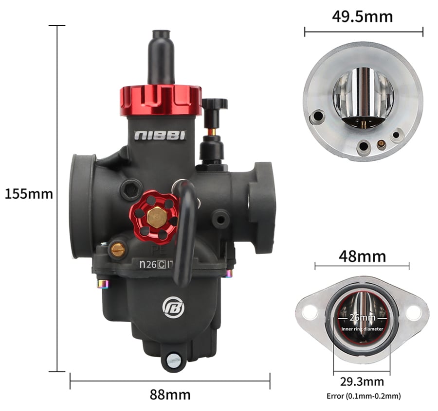 Combined with the NibbiRacing carburetor atomization technology, NibbiRacing creates a sensitive choke valve and improves performance. To achieve the best results, we also recommend buying the NIBBI RACING air filter. Accessible idle and mixture settings. The package includes a set of jets