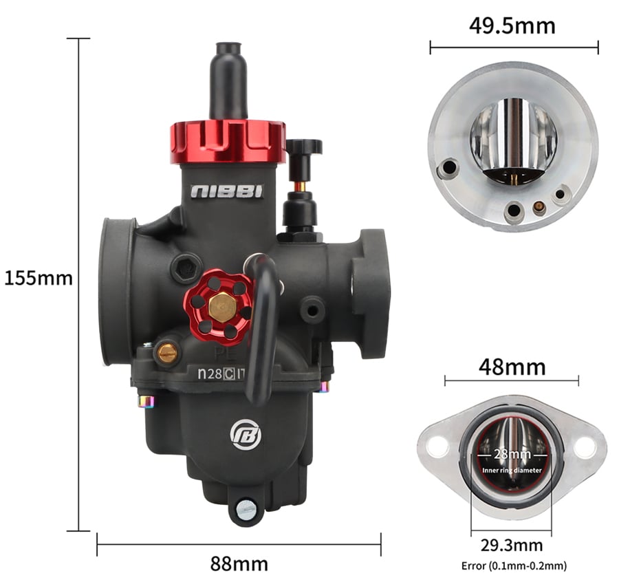 Combined with the NibbiRacing carburetor atomization technology, NibbiRacing creates a sensitive choke valve and improves performance. To achieve the best results, we also recommend buying the NIBBI RACING air filter. Accessible idle and mixture settings. The package includes a set of nozzles