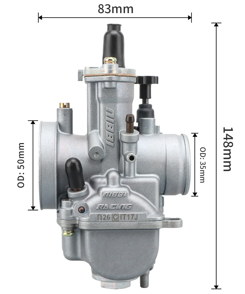 is most commonly used for 2T and 4T engines 140cc-200cc quadricycles, motorcycles and go-kars. Thanks to the excellent technology, the NIBBI RACING carburettors are perfectly tuned for better performance (5-10% more than normal carburettor) and have faster gas response. Nibbi Racing PWK carburetors are the perfect solution to improve vehicle performance. Aluminium alloy with anodic oxidation treatment which significantly improves corrosion resistance, wear resistance, insulation, thermal resistance and hardness of the carburetor. To achieve the best results, we also recommend buying the NIBBI RACING air filter. Accessible idle and mixture settings. The carburetor requires a rubber flange.