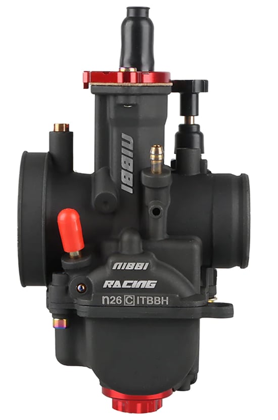 is most commonly used for 2T and 4T engines 140cc-200cc quadricycles, motorcycles and go-kars. Thanks to the excellent technology, the NIBBI RACING carburettors are perfectly tuned for better performance (5-10% more than normal carburettor) and have faster gas response. Nibbi Racing PWK carburetors are the perfect solution to improve vehicle performance. Aluminium alloy with anodic oxidation treatment which significantly improves corrosion resistance, wear resistance, insulation, thermal resistance and hardness of the carburetor. To achieve the best results, we also recommend buying the NIBBI RACING air filter. Accessible idle and mixture settings. The carburetor requires a rubber flange. The package includes a set of jets