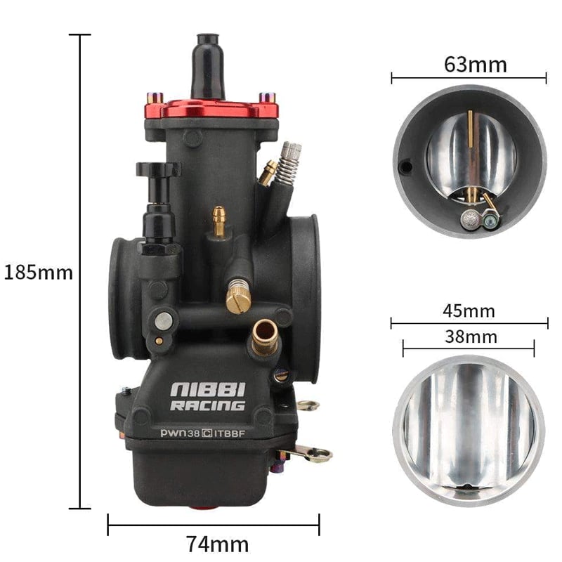 is most commonly used for 2T motors 250cc quadricycles, motorcycles and go-kart. Thanks to excellent technology, the NIBBI RACING carburetors are perfectly tuned for better performance and have faster gas response. Nibbi Racing PWN carburetors are the perfect solution to improve vehicle performance. Aluminium alloy with anodic oxidation treatment which significantly improves corrosion resistance, wear resistance, insulation, thermal resistance and hardness of the carburetor. Setting of idling and air and fuel mixtures to achieve optimum power, gas response and fuel consumption. To achieve the best results, we also recommend buying the NIBBI RACING air filter. Accessible idle and mixture settings. The carburetor requires a rubber flange. The package includes a set of jets